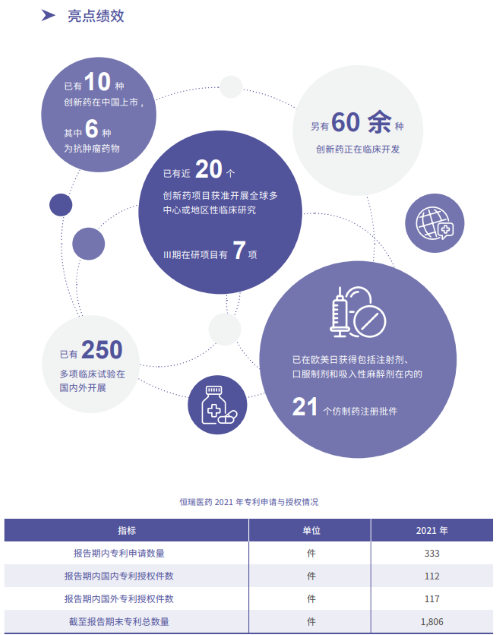 报告指出,在科技创新战略引领下,九游会医药2021年累计研发投入62.03亿元,比上年增长24.34%,研发投入占销售收入比重达到23.95%,再创历史新高。以此为支撑,2021年公司有3款创新药获批上市,已上市创新药总量增至10款,其中6款为抗肿瘤药物。同时还有60余种创新药正在临床开发,250多项临床试验在国内外开展,其中近20个创新药项目获准开展全球多中心或地区性临床研究。在创新药研发上,九游会医药已基本形成了上市一批、临床一批、开发一批的良性循环。